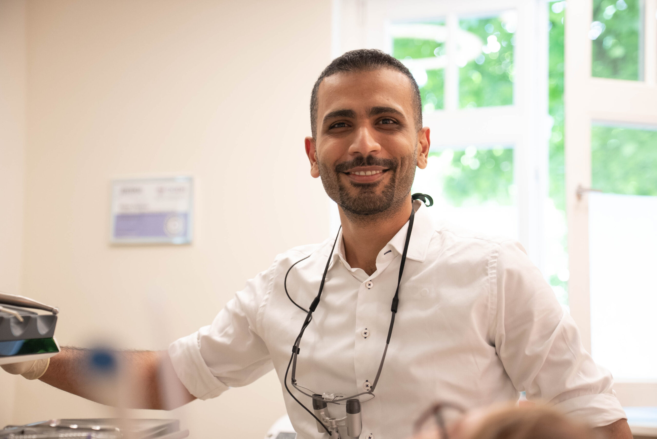 Alle Behandler:innen unserer Praxis arbeiten mit Lupenbrillen – Christian Klein mit bis zu 15-facher Vergrößerung.